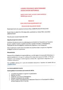 - Diplôme souhaité à minima : Formation idéalement Responsable Equipement Touristique, BAFD, DEJEPS, BEPJEPS LTP